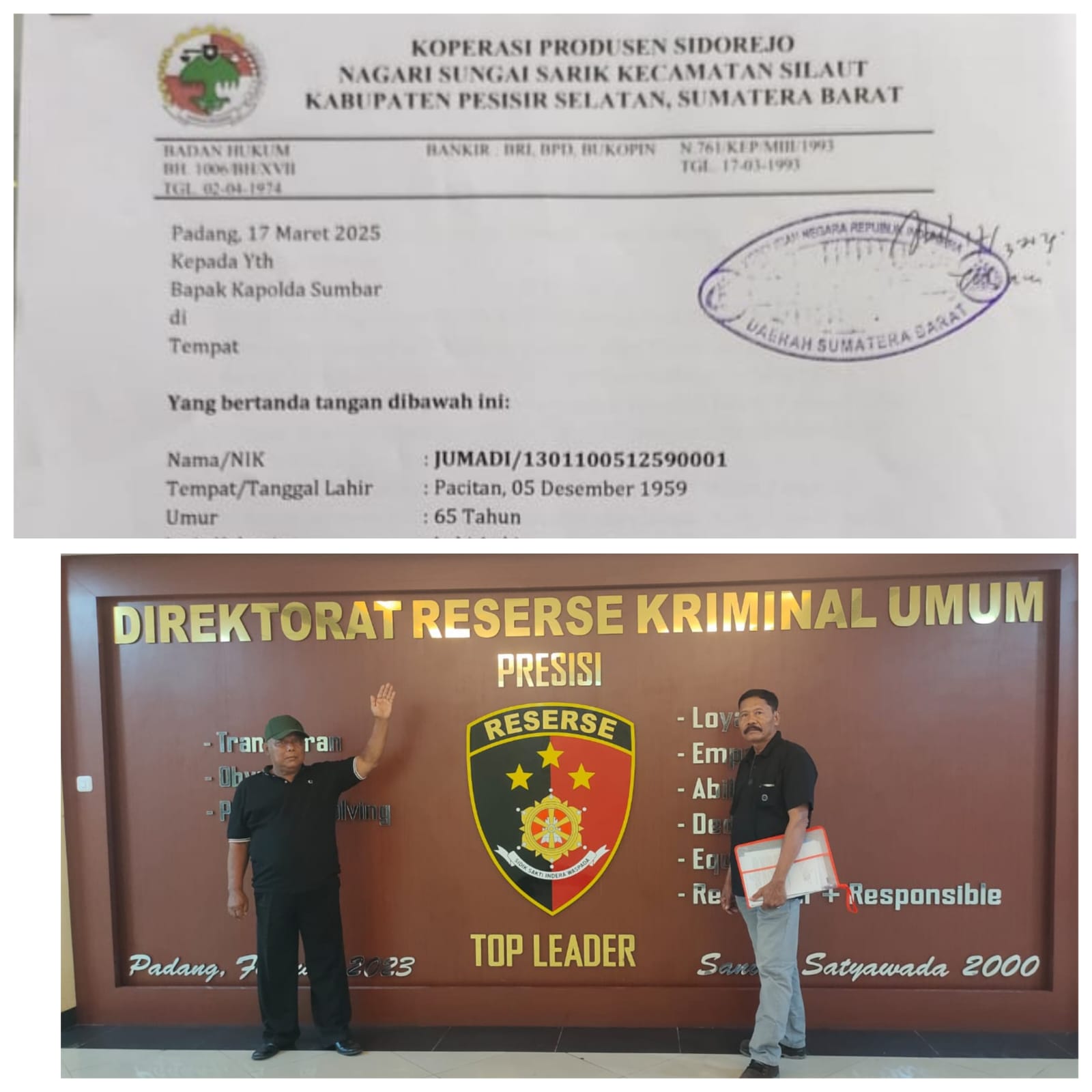 Team Dir Krimum Polda Sumbar pada kamis 15/05/2025 resmi turun ke Nagari Sungai Sarik Kecamatan Silaut Kabupaten Pesisir Selatan Provinsi Sumatera Barat untuk melakukan pemeriksaan kepada para saksi dan pelaku dalam kasus dugaan penggelapan hasil panen buah kelapa sawit milik KUD Sidoarjo Kelompok Tani Sari Murni V.