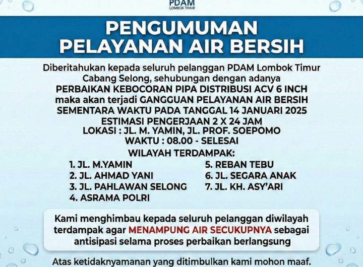 Redaksi24jam.com, Lombok Timur (NTB)-Perusahaan Daerah Air Minum (PDAM) Lombok Timur kini memfokuskan program besar pada perluasan jaringan distribusi air bersih, khususnya di wilayah selatan yang selama ini dikenal sebagai daerah rawan air.