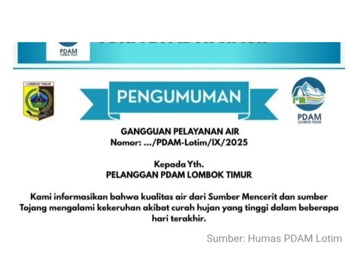 Redaksi24jam.com, Lombok Timur (NTB)– Perusahaan Daerah Air Minum (PDAM) Kabupaten Lombok Timur menyampaikan permakluman kepada seluruh pelanggan...
