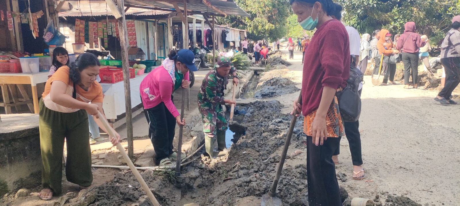 Bersama dengan seluruh aparat desa dan masyarakat binaan dengan penuh semangat membersihkan lumpur dan kotoran yang ada di sekitaran jalan dan parit meskipun kondisi masi dalam proses pemulihan pasca banjir, bersama sama kerja keras Babinsa memberikan harapan semangat baru bagi warganya.selain melakukan kegiatan pembersihan Babinsa juga memberikan himbawan. kepada warga sekitar mengingatkan mereka untuk tetap waspada terhadap potensi bencana alam seperti banjir dan longsor,Himbawan tersebut di sertai dengan ajakan untuk tetap menjaga budaya gotong royong dan saling membantu satu sama lain dalam menghadapi cobaan…