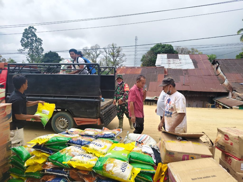Badiri-, Babinsa Koramil 04/PS, Kodim 0211/TT, Korem 023/KS, Serda Irfan melaksanakan pendampingan pendistribusian logistik untuk korban bencana alam di lingkungan 1, Kelurahan Lopian, Kec Badiri,Kab Tapanuli Tengah. (15/12/2025).