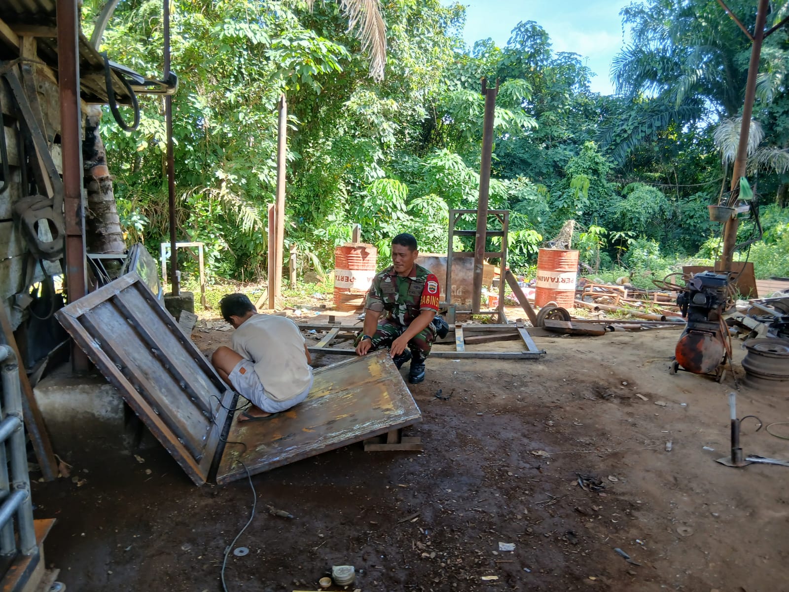 TAPTENG_ Disela-sela memonitoring wilayah binaan, Babinsa Koramil 02/Sorkam, Sertu.Kasi Elizai. menyambangi Pemilik Bengkel Las Mobil yang sedang memperbaiki bak mobil. Berlokasi di Kelurahan Naipospos Barat. Kecamatan Sorkam, Kabupaten Tapanuli Tengah.Selasa 17/03/2026)
