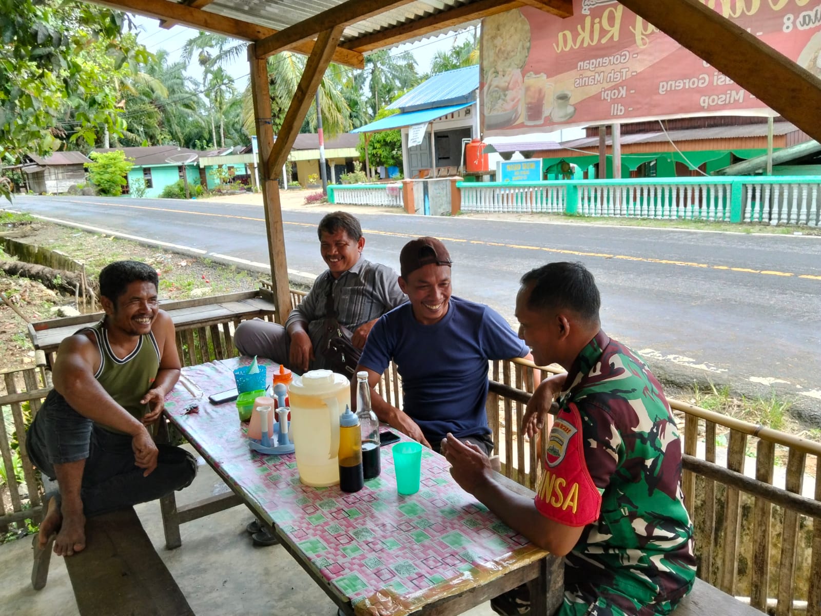 TAPTENG_Dalam menjalin keakraban dan keharmonisan dengan warga binaan,Sertu Adi Wiguna. melaksanakan kegiatan Komunikasi Sosial (Komsos) dan berkoordinasi dengan warga masyarakat. Bertempat di salah satu warung milik bapak Sarlin Tarihoran di desa Siantar Ca Kec Sosorgadong Kabupaten Tapanuli Tengah.