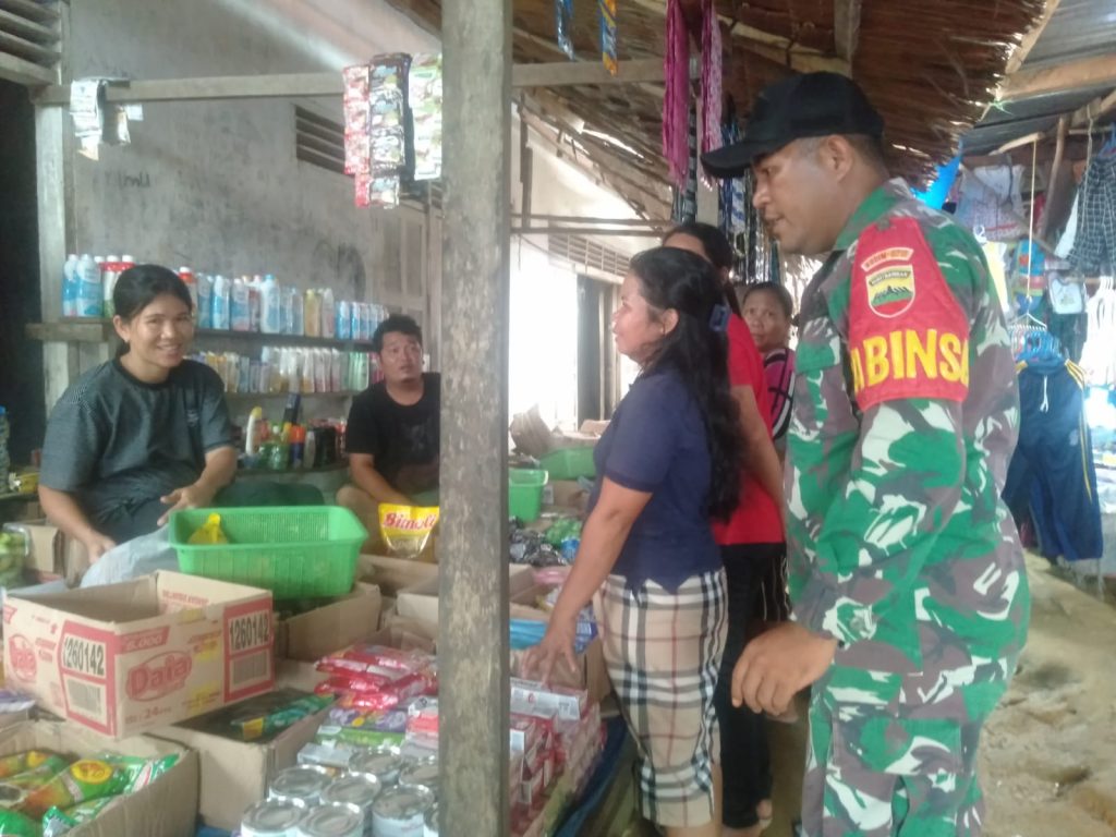 Merangkul warga binaan Babinsa Serda Elinardo Hutabarat Koramil 01/Barus kodim 0211/TT melaksanakan Kegiatan komunikasi sosial (Komsos) di warung Bapak hendra silaban di Kelurahan Bajamas.Kecamatan Sirandorung
