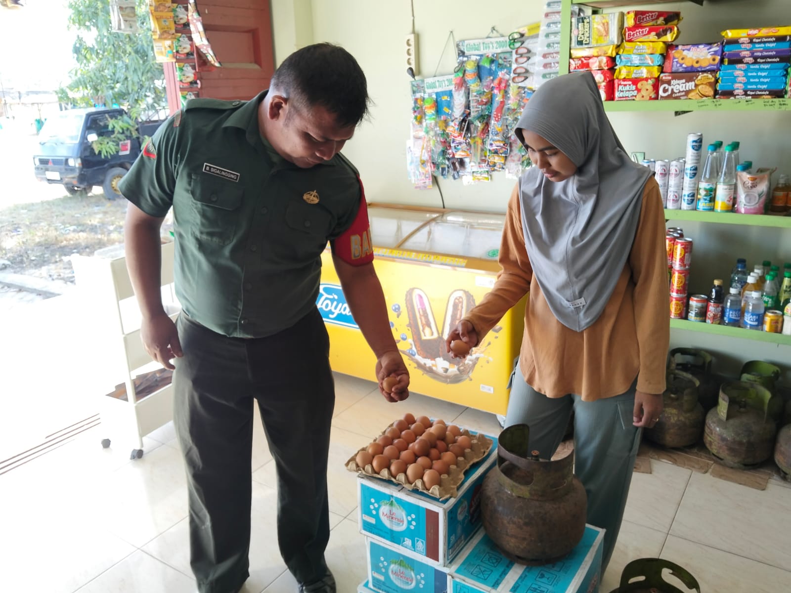 TAPTENG_Dalam membina kebersamaan dengan warga binaan, Kopda Balut Galingging.sapaan hangat penuh harapan langkah tegap Babinsa datang singgah dikios kecil nan bersahaja,dalam upaya mempererat hubungan dengan masyarakat sekaligus mendukung perkembangan usaha mikro kecil,dan menengah Babinsa melaksanakan kegiatan Komunikasi Sosial (Komsos). Bertempat di salah satu Kios milik warga, yang berlokasi di Desa.Sorkam Tengah. Kecamatan.Sorkam.Kabupaten Tapanuli Tengah.