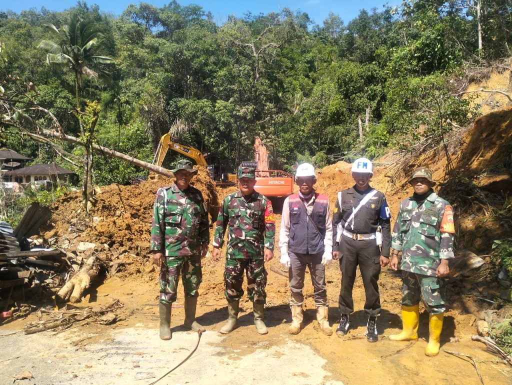 TAPTENG_Guna mempercepat akses pembukaan jalan utama, Babinsa Koramil 05/Kolang Serda Ius Pasaribu bantu penanganan longsor yang menutupi bahu jalan penghubung Sibolga – Tarutung tepat nya di Desa Simaningggir Kec. Sitahuis Kab. Tapanuli Tengah. Sabtu (20/12/2025)