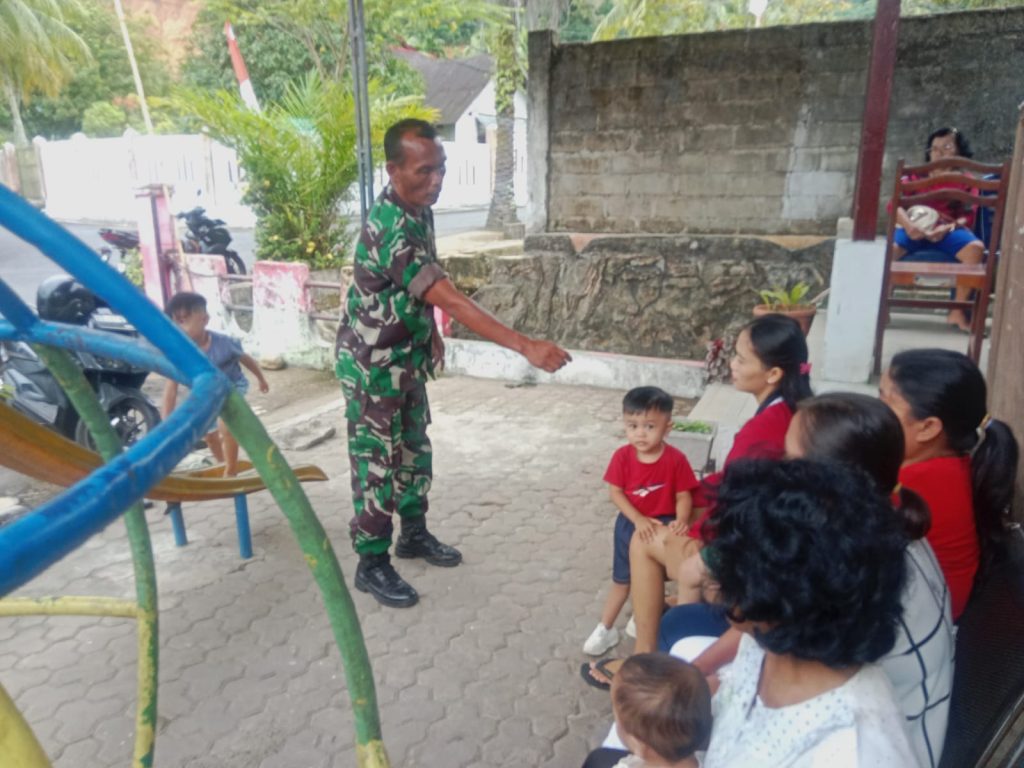 Sertu D.Panjaitan Babinsa Koramil 06/Kota Kodim 0211/TT melaksanakan kegiatan komsos bersama ibu-ibu PKK dan Kader warga binaan di Kelurahan Angin Nauli, Kec. Sibolga utara. Kota Sibolga Kamis (13/11/2025).