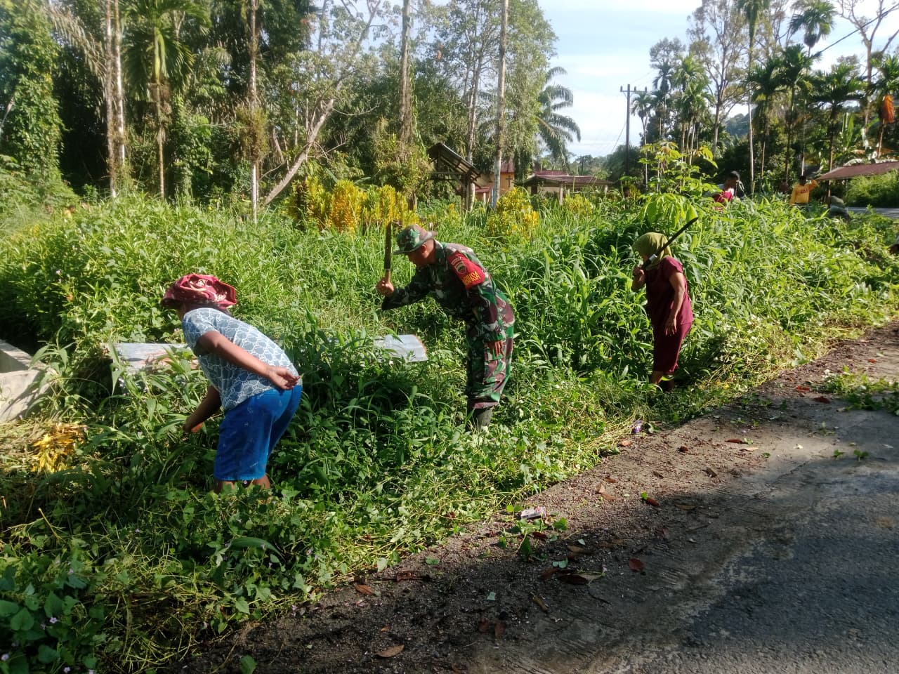 ‘’Kegiatan ini rutinitas dilakukan masyarakat sebulan atau seminggu sekali, Untuk memelihara kekompakan dan kebersihan kampung, melalui kegiatan inilah bentuk kepedulian kita kepada lingkungan’’.Jelas Lettu Inf Rusliadi, Danramil 04/Pinanagsori