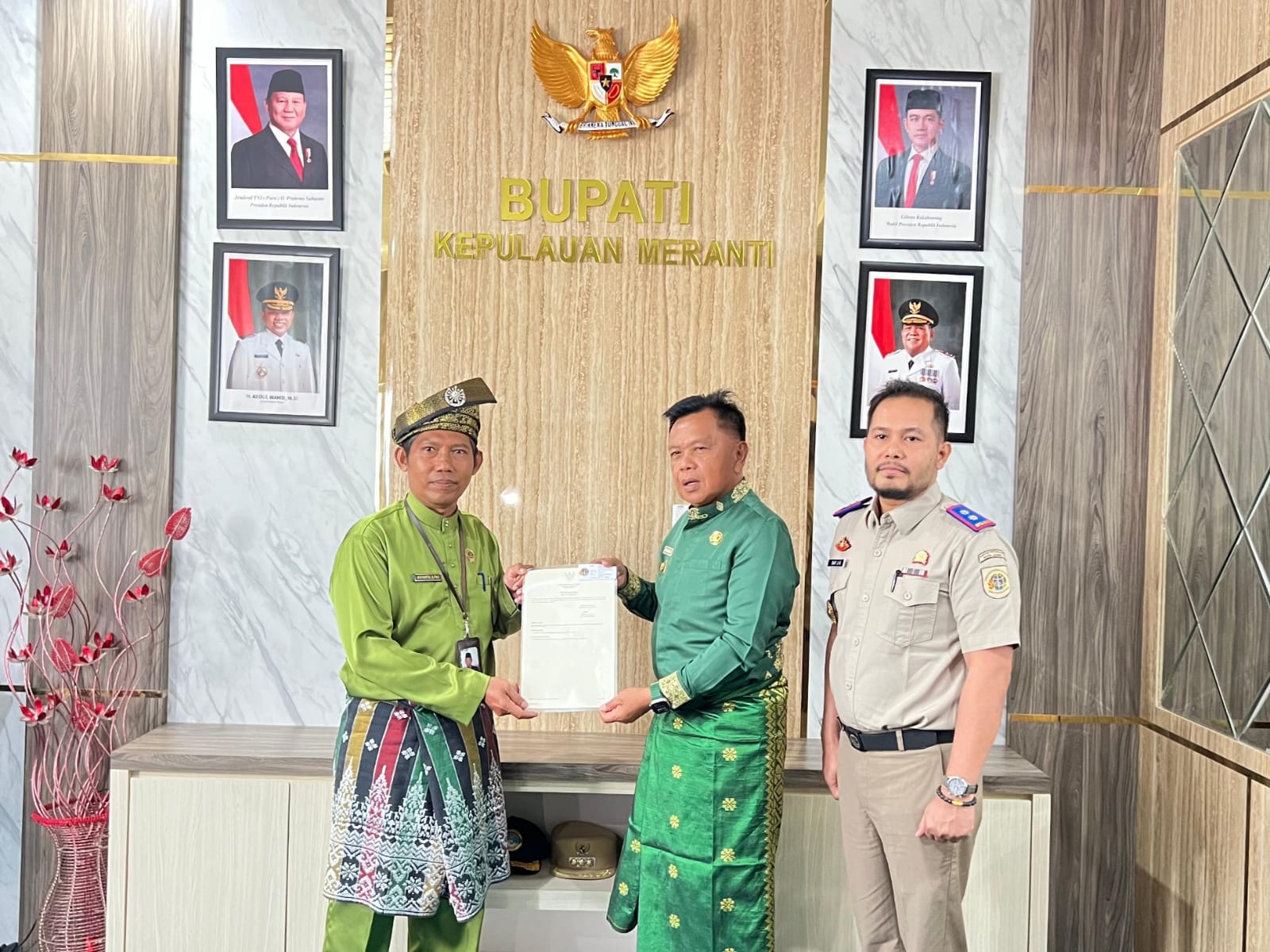 Redaksi24jam. MERANTI — Bupati Kepulauan Meranti, AKBP (Purn) H. Asmar, menerima sertifikat aset tanah milik Pemerintah Kabupaten Kepulauan Meranti dari Kantor Pertanahan Kabupaten Kepulauan Meranti, Kementerian Agraria dan Tata Ruang/Badan Pertanahan Nasional (ATR/BPN), Selasa (16/12/2025), di Kantor Bupati, Selatpanjang.
