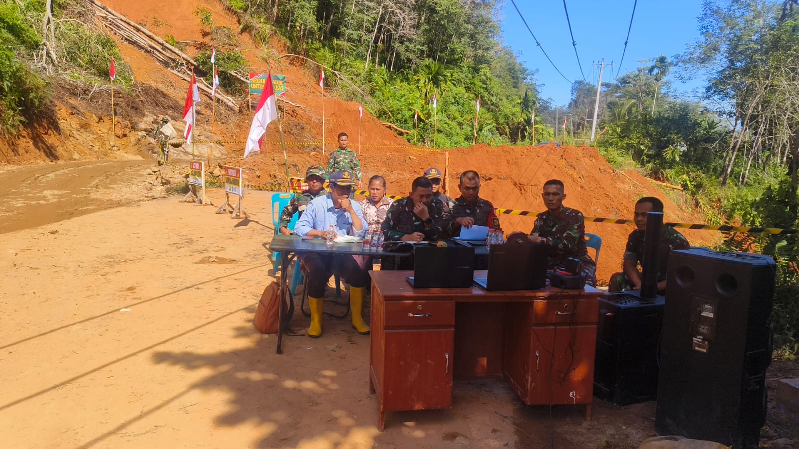 Vidcom tersebut dihadiri sejumlah pejabat dan unsur terkait, antara lain Danbrig 7/Rimba Raya, Ka Komlek Hubdam I/Bukit Barisan, Dandim 0211/Tapanuli Tengah, Danyonif 122/Tombak Sakti, Camat Sitahuis, Kepala Desa Rampah, serta Lurah Rampah. Kehadiran lintas unsur ini mencerminkan komitmen bersama dalam mempercepat penanganan dan pemulihan pascabencana.