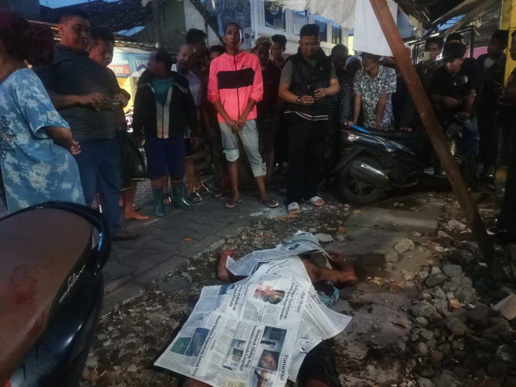 SURABAYA -Warga Jalan Wonokusumo Jaya digemparkan dengan penemuan mayat berjenis kelamin laki-laki tanpa identitas dengan luka bacokan pada bagian perut pada Minggu (18/1), sekira pukul 04.15 WIB, bertempat di depan warkop Cooffe Black.