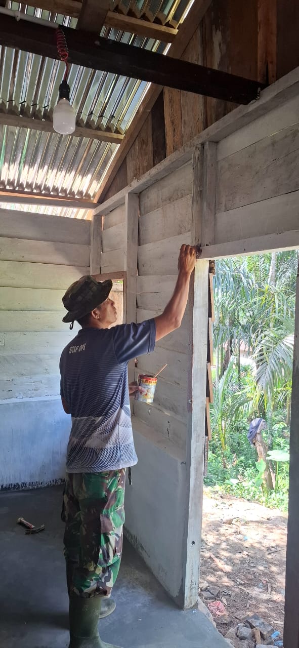 Hasil pantauan Penerangan Kodim (Pendim) 0211/TT pada hari Jum’at (31/10/2025) Satgas TMMD sudah mulai pemasangan pintu, cendela dan pengecatan dinding rumah.