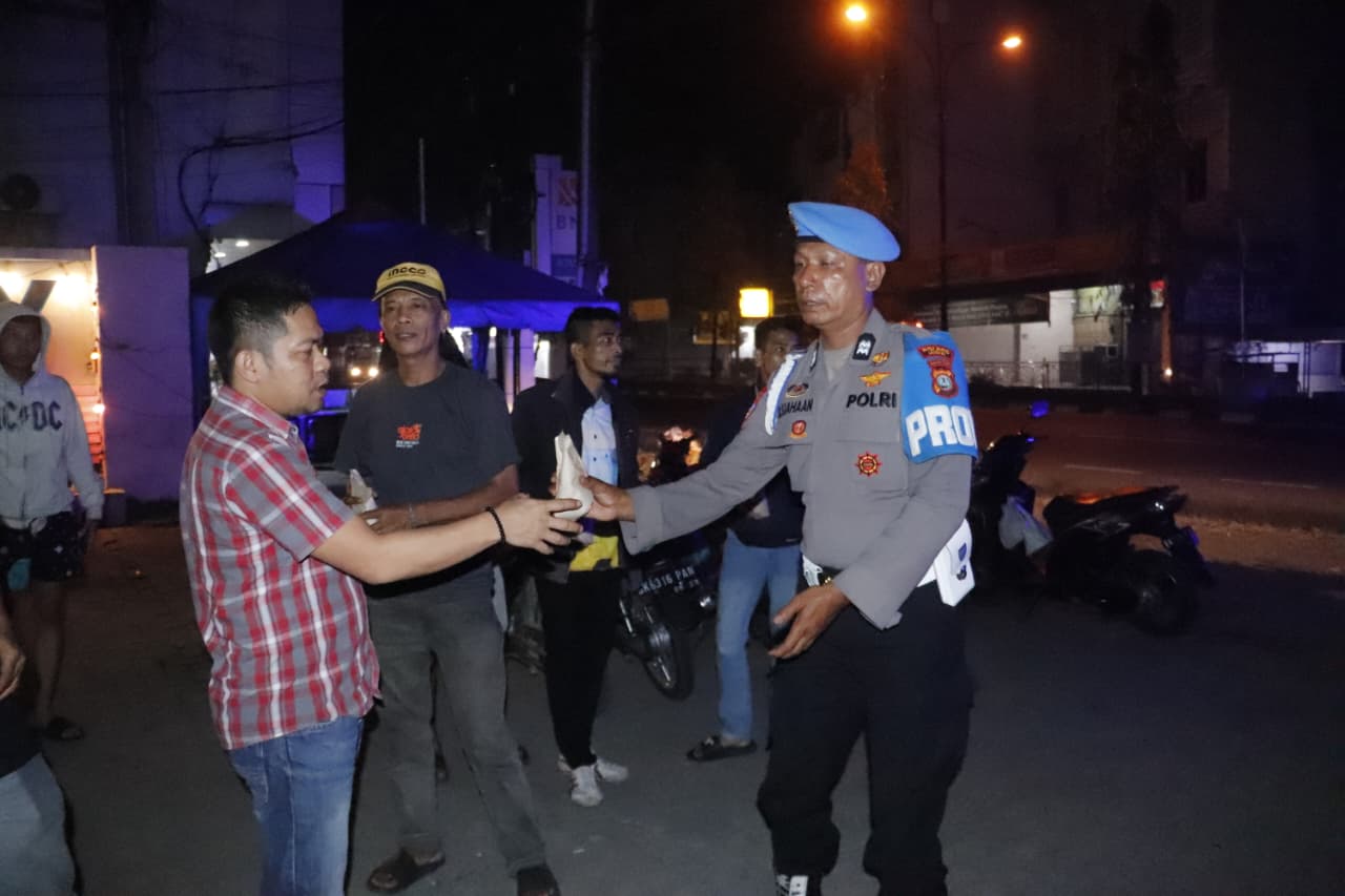 Selain berbagi makanan sahur, personel Polres Langkat juga menyampaikan imbauan kepada masyarakat agar tetap tertib berlalu lintas serta mengutamakan keselamatan dalam berkendara, khususnya pada waktu dini hari.
