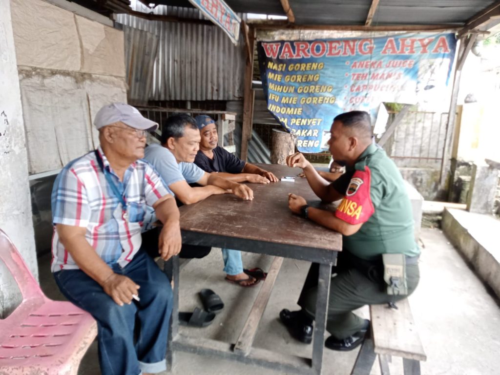 Ciptakan kedekatan warga binaan, Babinsa Koramil 06/Kota Kodim 0211/TT Serda Hilman Purba melaksanakan Komsos dengan masyarakat kelurahan Pancuran Pinang, Kecamatan Sibolga Sambas, Senin (17/11/2025).