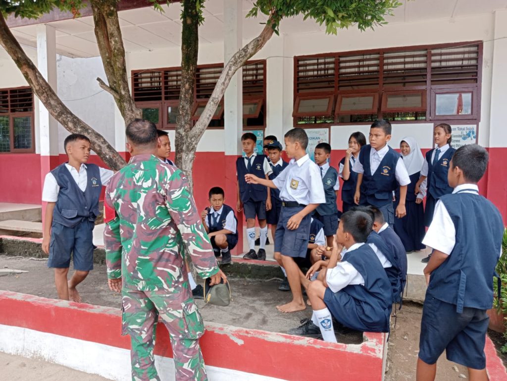 Lebih lanjut Babinsa juga menyampaikan pesan-pesan positif kepada anak-anak untuk memiliki rasa empati terhadap sesama teman dan sikap menghormati guru serta orang tua, sebagai Babinsa kami secara rutin membantu para guru untuk memberikan masukan dan nasehat kepada generasi muda khususnya siswa agar tertanam dalam dirinya sejak dini untuk hidup disiplin dan rajin menuntut ilmu agar bisa menghargai cita-cita mereka sehingga nantinya bisa menjadi kebanggaan orang tua dan mengharumkan Bangsa dan Negara. Ujar Serda Kepler Situmorang