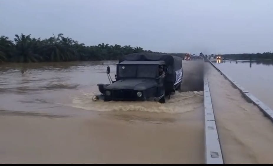 Karena tingginya debit air di Jalinsum Medan–Banda Aceh yang mencapai 1,5 meter, penyaluran bantuan dilakukan menggunakan truk Rio Batalyon Arhanud 11/WBY. Kegiatan berlangsung aman dan lancar hingga pukul 21.30 WIB.