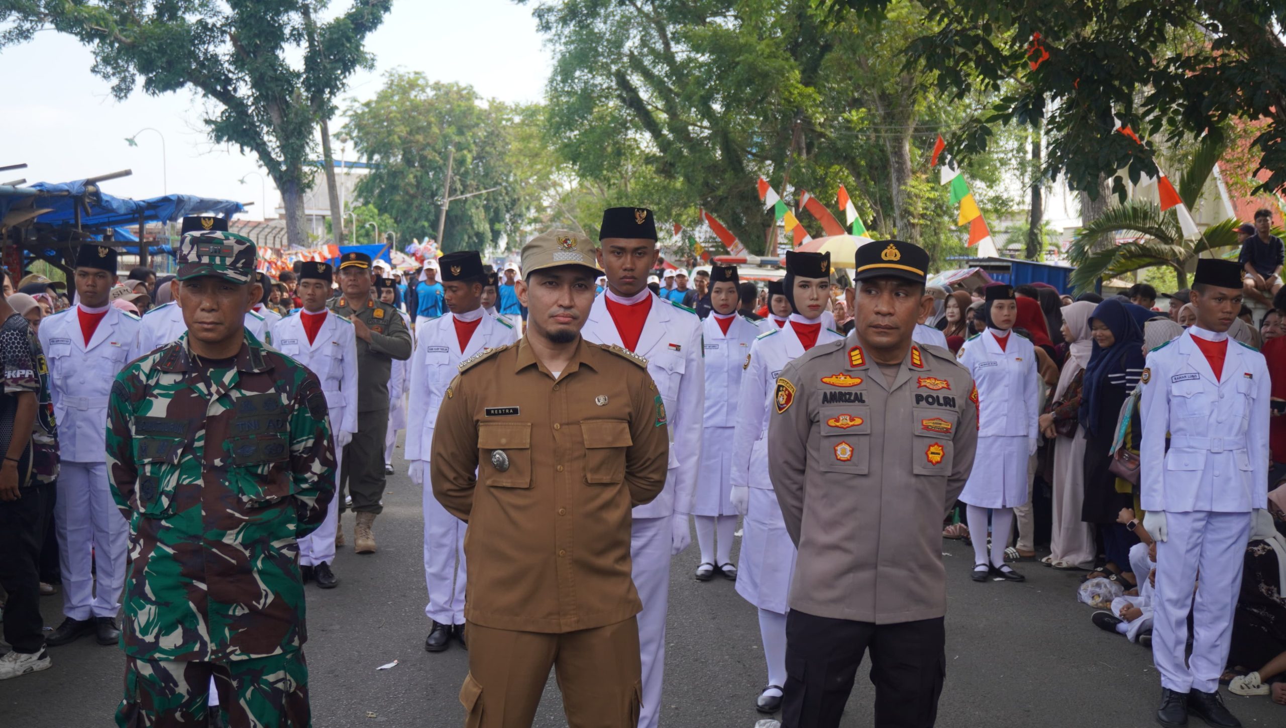 Redaksi24jam.com.Langkat (Sumut) – Kapolres Langkat AKBP David Triyo Prasojo, SH, SIK M.Si, menghadiri puncak peringatan Brandan Bumi Hangus (BBH) ke-78 di lapangan Petrolia Pertamina Pangkalan Brandan. Sebelumnya AKBP David Triyo Prasojo melepas peserta pawai karnaval kemerdekaan menuju tempat upacara.