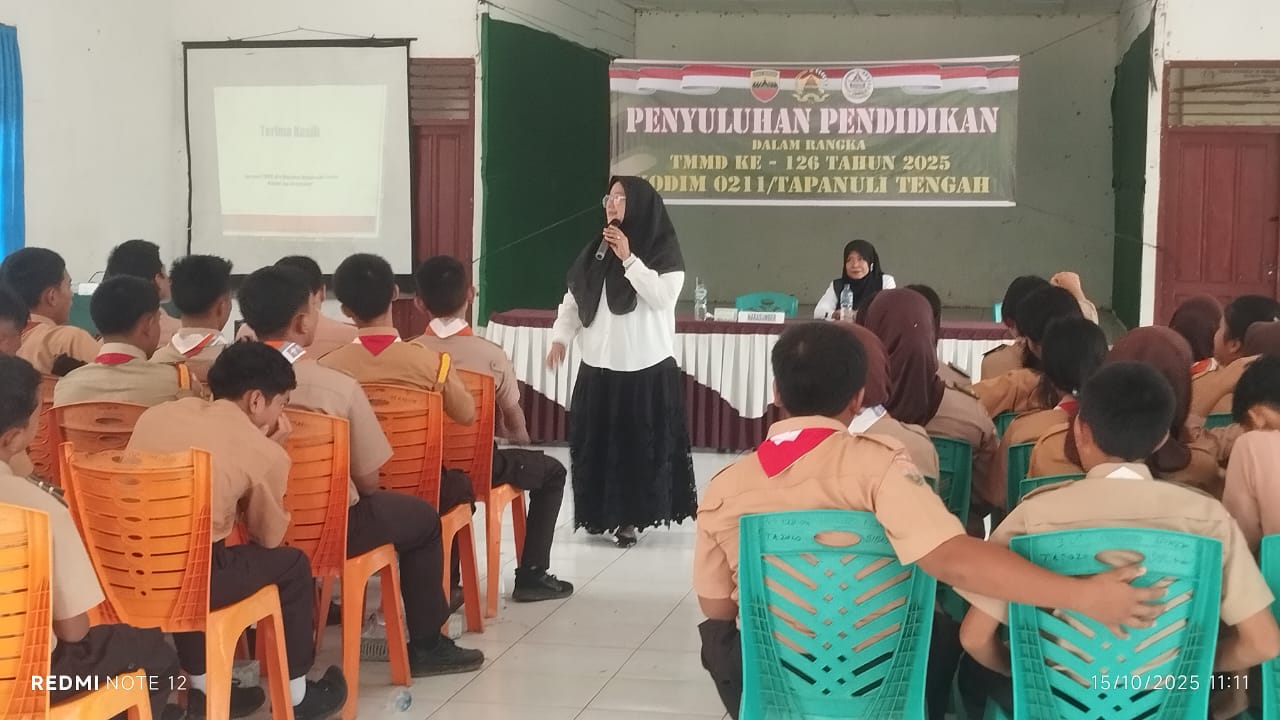 Tapteng_Meningkatkan kesadaran akan pentingnya pendidikan di tengah masyarakat, Kodim 0211 Tapanuli Tengah melaksanakan kegiatan penyuluhan pendidikan sebagai bagian dari Program TMMD Ke-126 Kegiatan ini merupakan salah satu bentuk kolaborasi antara Kodim 0211 Tapanuli.Tengah dengan dinas terkait, yang kali ini melibatkan perwakilan dari Dinas Pendidikan Kabupaten Mesuji sebagai narasumber, Kamis 07 Maret 2024.