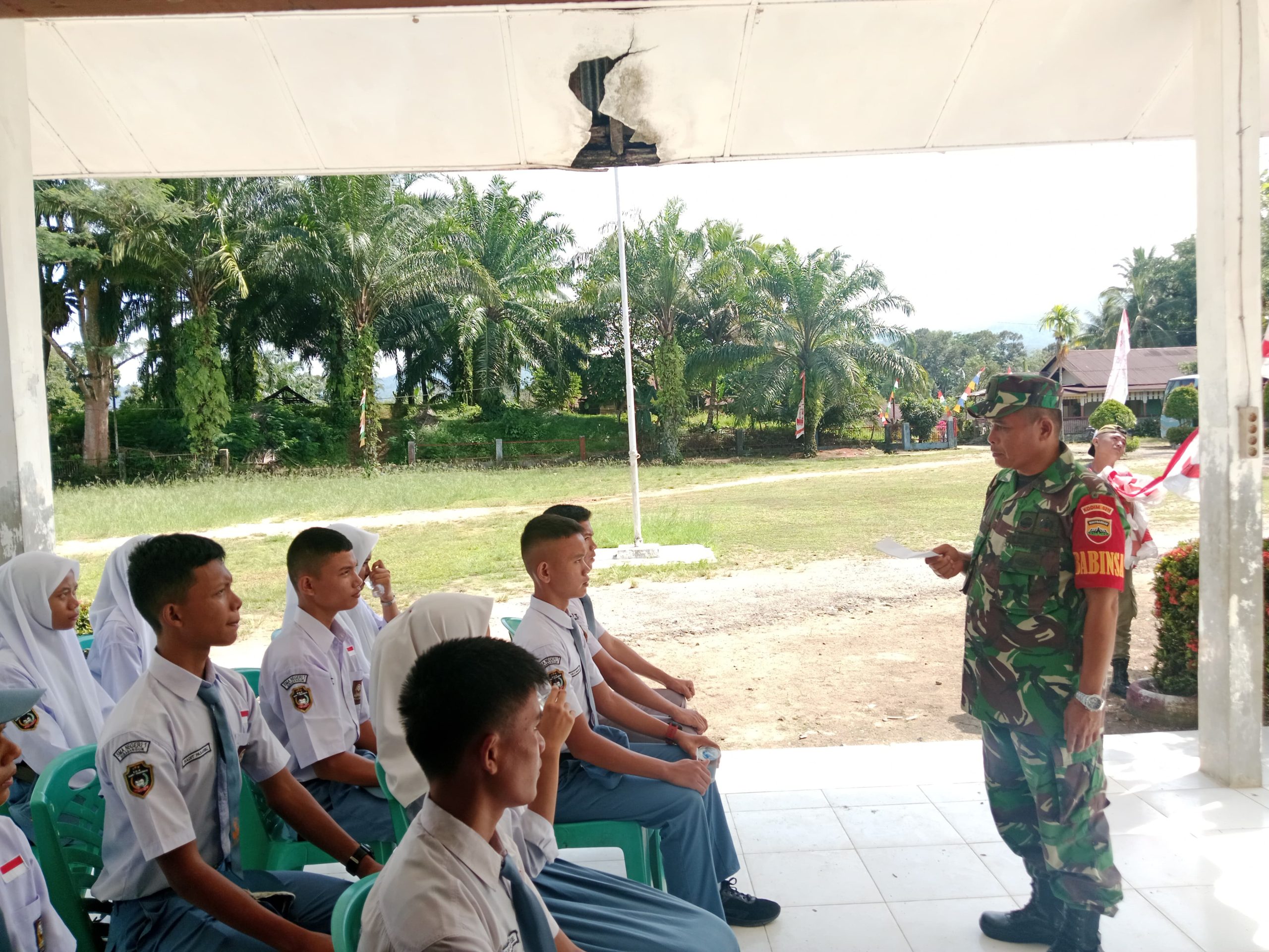 “Sebagai Babinsa kami secara rutin membantu para guru untuk memberikan masukan dan nasehat kepada generasi muda khususnya siswa agar tertanam dalam dirinya sejak dini untuk hidup disiplin dan rajin menuntut ilmu agar bisa menghargai cita-cita mereka sehingga bisa menjadi kebanggaan orang tua dan mengharumkan Bangsa dan Negara,” pungkas Babinsa.