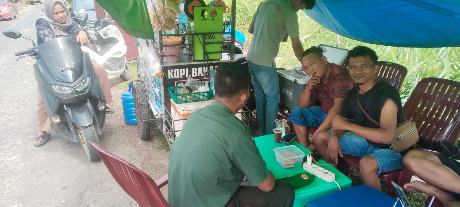 Kali ini Babinsa manfaatkan warung kopi untuk sarana berkomunikasi dengan warga binaannya.