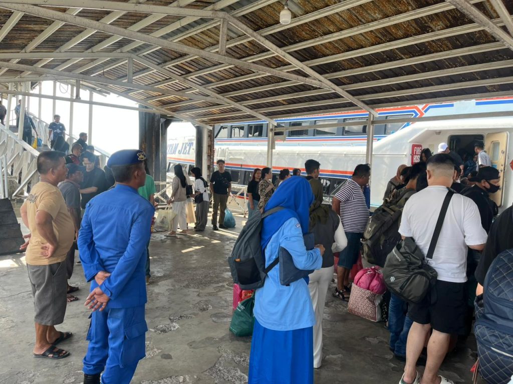 Redaksi24jam. MERANTI – Arus mudik dalam rangka perayaan Tahun Baru Imlek 2026 di Pelabuhan Tanjung Harapan Selatpanjang terpantau ramai, Senin (16/2/2026). Sejak pagi hingga sore hari, aktivitas kedatangan dan keberangkatan penumpang berlangsung intens. Tercatat sebanyak 2.310 penumpang melakukan perjalanan, baik domestik maupun internasional.