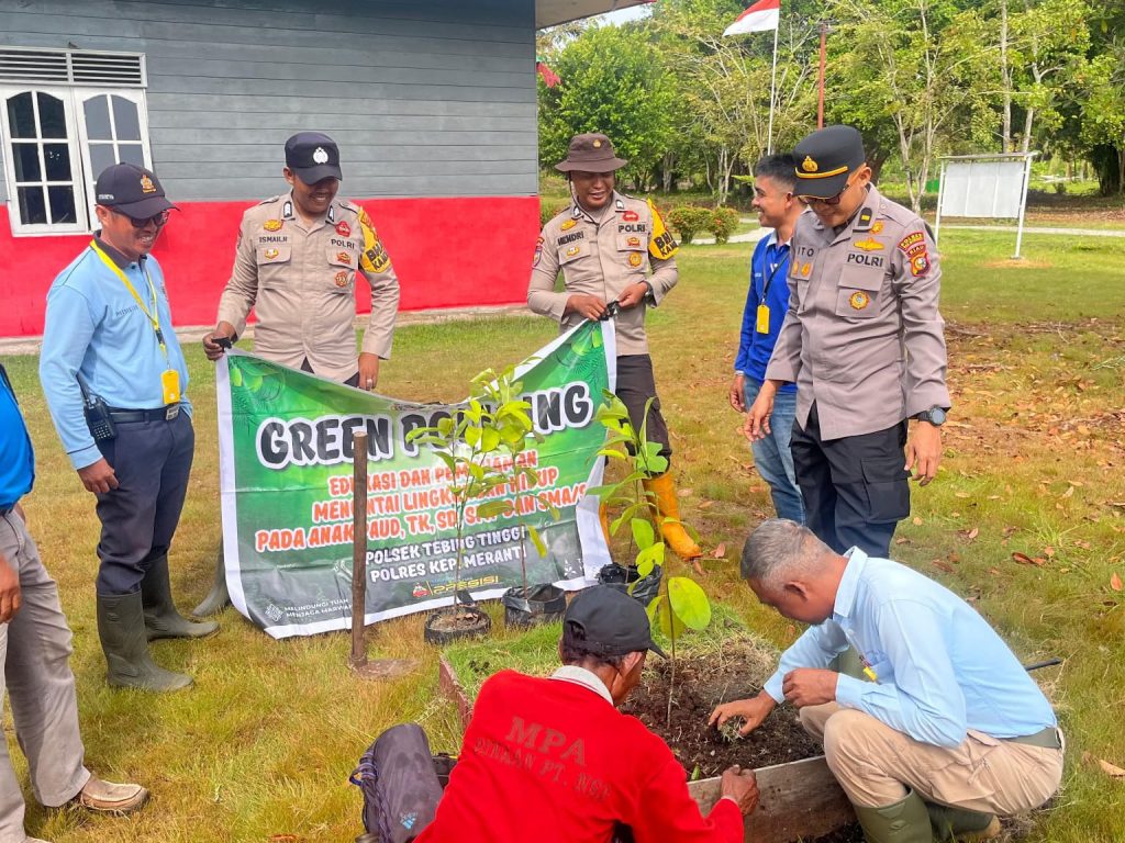 Di waktu yang sama, jajaran Polsek Merbau juga melaksanakan kegiatan Green Policing di SMP Negeri 2 Meranti Bunting, Kecamatan Merbau. Kegiatan penghijauan ini berlangsung sekitar pukul 09.00 WIB dan dihadiri oleh pihak sekolah, para guru, serta seluruh siswa.