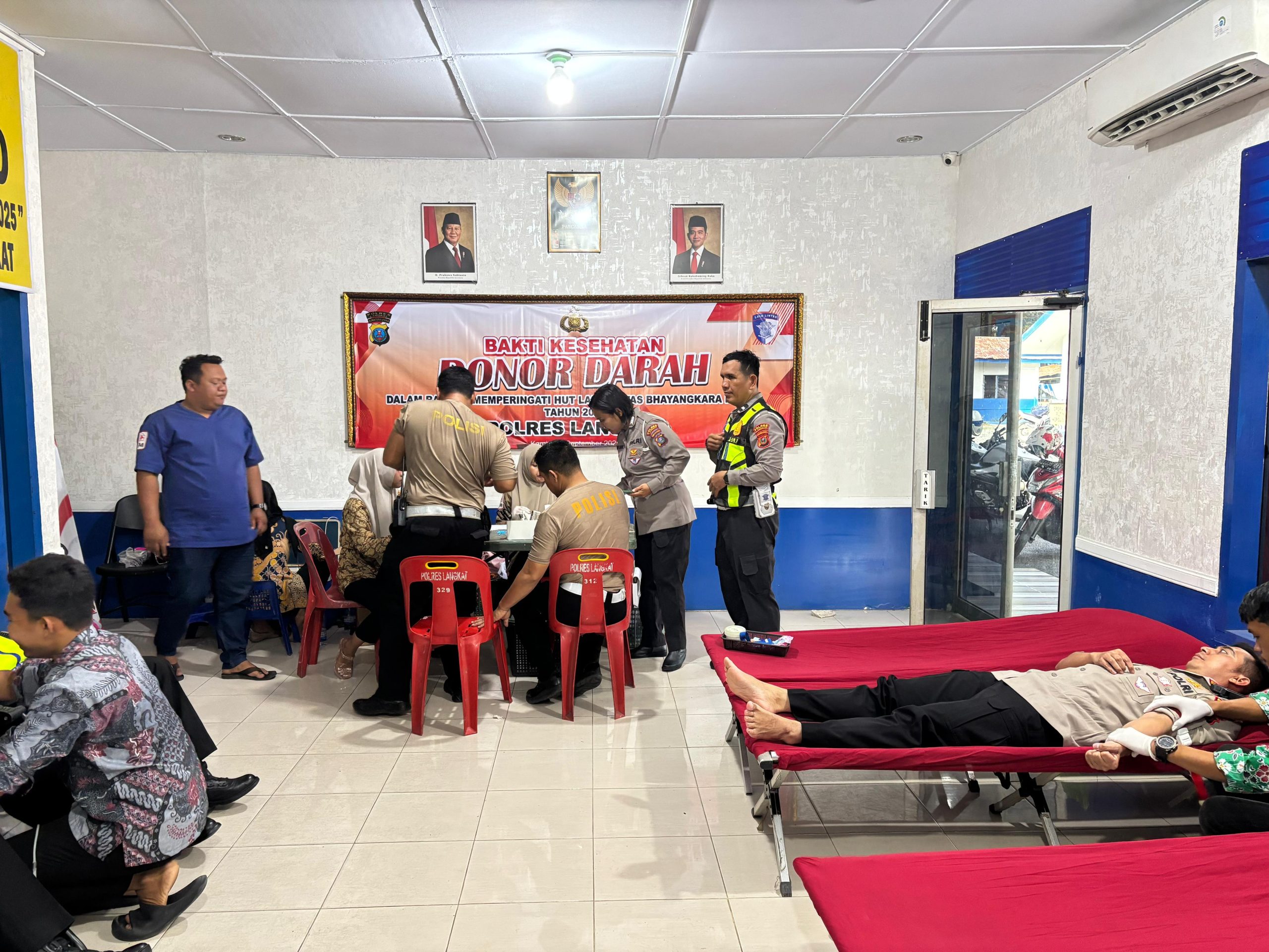 (Sumut)Langkat-Satuan Lalu Lintas (Satlantas) Polres Langkat menggelar kegiatan donor darah di Kantor Sat lantas Polres Langkat dalam rangka memperingati Hari Ulang Tahun Lalu Lintas (HUT Lantas) ke-70,, Kamis (18/9/2025).