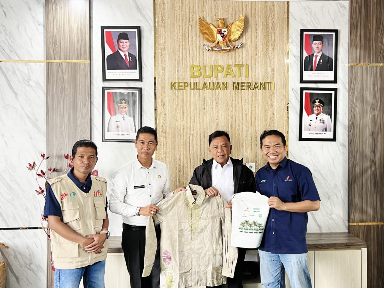 Redaksi24jam. MERANTI — Bupati Kepulauan Meranti, AKBP (Purn) H. Asmar, menerima kunjungan manajemen PT Energi Mega Persada (EMP) di Kantor Bupati Kepulauan Meranti, Rabu (10/12/2025). Kunjungan ini dilakukan dalam rangka penyaluran bantuan sosial bagi anak yatim serta penyerahan contoh batik khas Kepulauan Meranti.