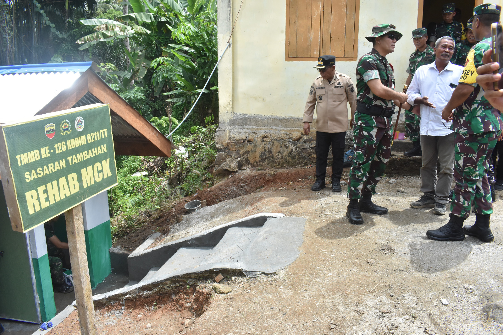 TAPTENG_Tim Pengawasan dan Evaluasi (Wasev) TNI Manunggal Membangun Desa (TMMD) ke-126 melaksanakan kunjungan kerja ke Komando Taktis (Kotis) TMMD ke-126 Kodim 0211/TT yang berlokasi di Desa sihiong dan desa Sikkam Kecamatan Sibabangun, Kab.Tapteng Kamis (23/10/2025). Setibanya di Desa Sihiong Tim Wasev langsung menuju Kotis TMMD dan disambut anak sekolah dan masyarakat dengan tarian tortor untuk menerima paparan dari Dansatgas TMMD ke-126 Kodim 0211/TT Letkol Inf Fernando Batubara terkait progres pelaksanaan kegiatan TMMD, baik sasaran fisik maupun nonfisik yang telah berjalan.