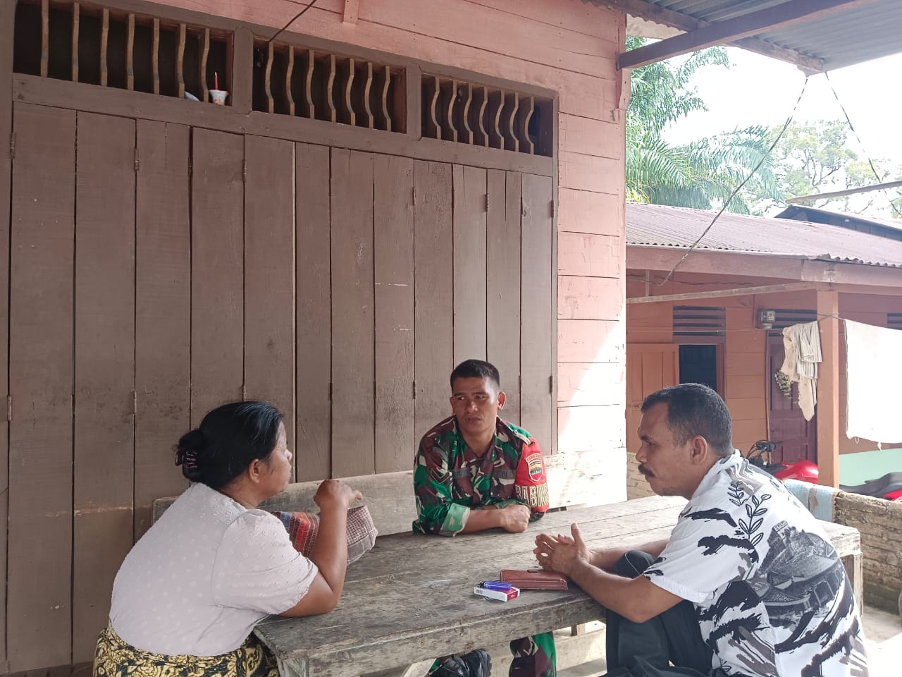TAPTENG_Dalam membina kebersamaan dengan warga binaan,Serda.Jhon.Banjarnahor. melaksanakan kegiatan Komunikasi Sosial (Komsos). Bertempat di salah satu warung, yang berlokasi di Desa.Sukamaju. Kec.Pasaribu Tobing.Kabupaten Tapanuli Tengah.