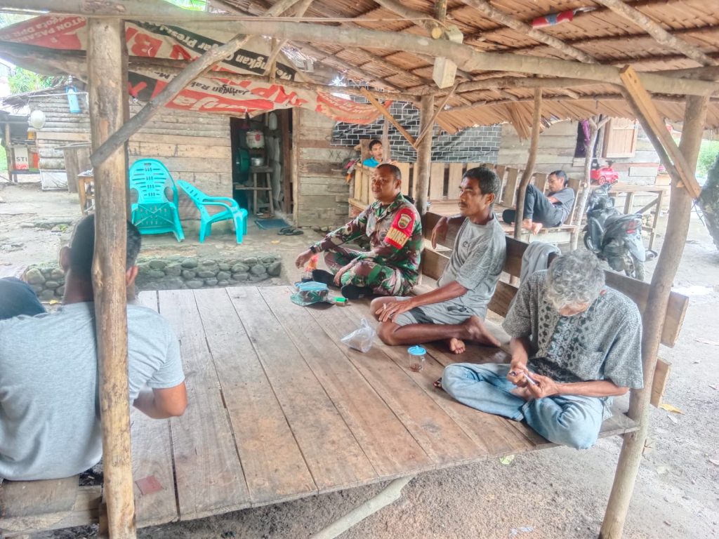 TAPTENG_Dalam membina kebersamaan dengan warga binaan,Sertu.Antoni.Manik. melaksanakan kegiatan Komunikasi Sosial (Komsos). Bertempat di salah satu warung, yang berlokasi di Desa.Pearaja. Kec.Sorkam.Kabupaten Tapanuli Tengah.