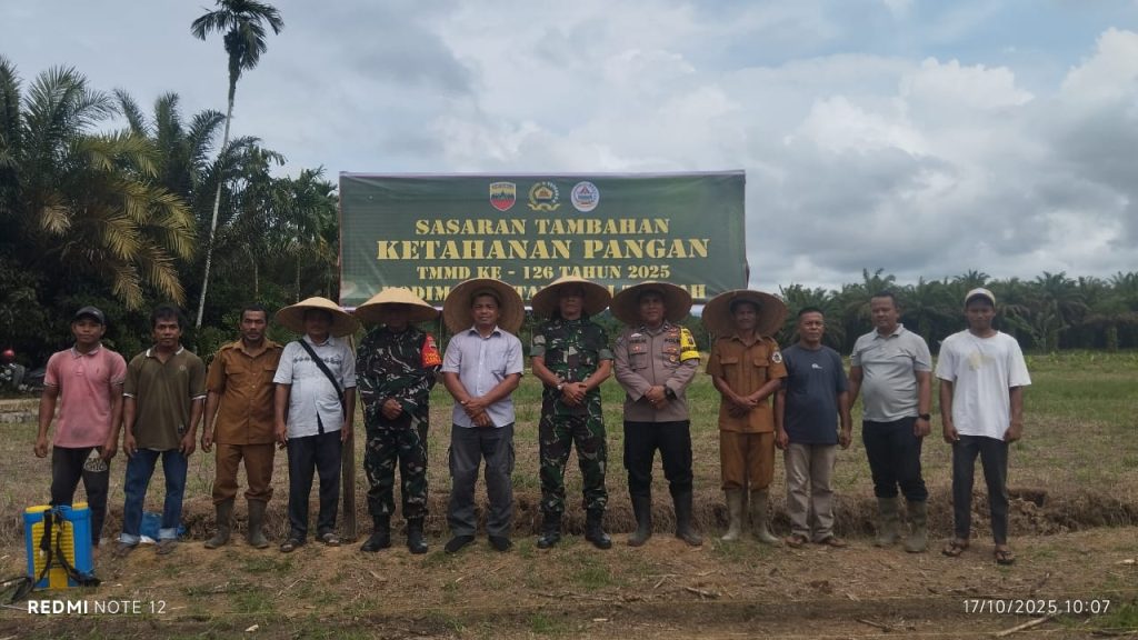 TAPTENG- Satuan Tugas TNI Manunggal Membangun Desa (TMMD) ke-126 Kodim 0211/TT membuka lahan untuk Program Ketahanan Pangan (Hanpangan), di wilayah desa Lumut Kec Lumut Kab.Tapteng Seni (20/10/2025).