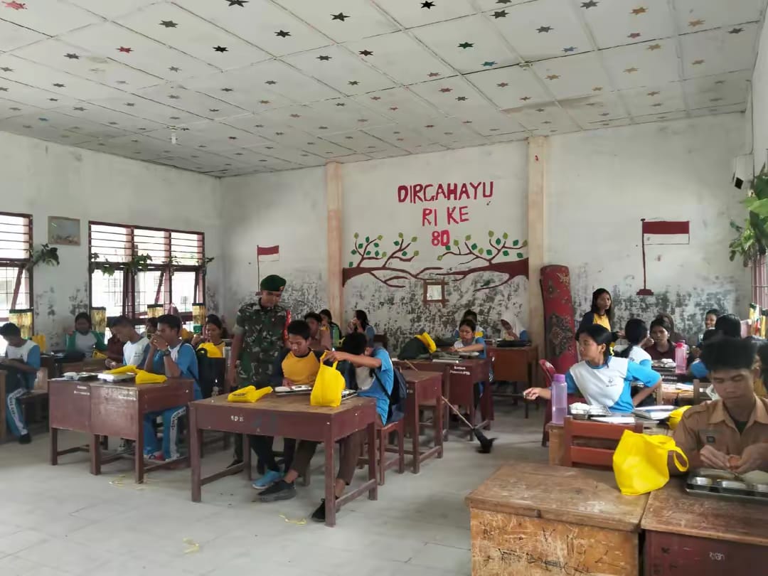 Tapteng – Babinsa Koramil 01/Barus Kodim 0211/TT Sertu Jhonathan Bagariang melaksanakan pendampingan pendistribusian Makanan Bergizi Gratis kepada Siswa TK,SD, SMP dan SMA di wilayah Kecamatan Barus, Kabupaten Tapanuli Tengah. Jumat (10/04/2026)